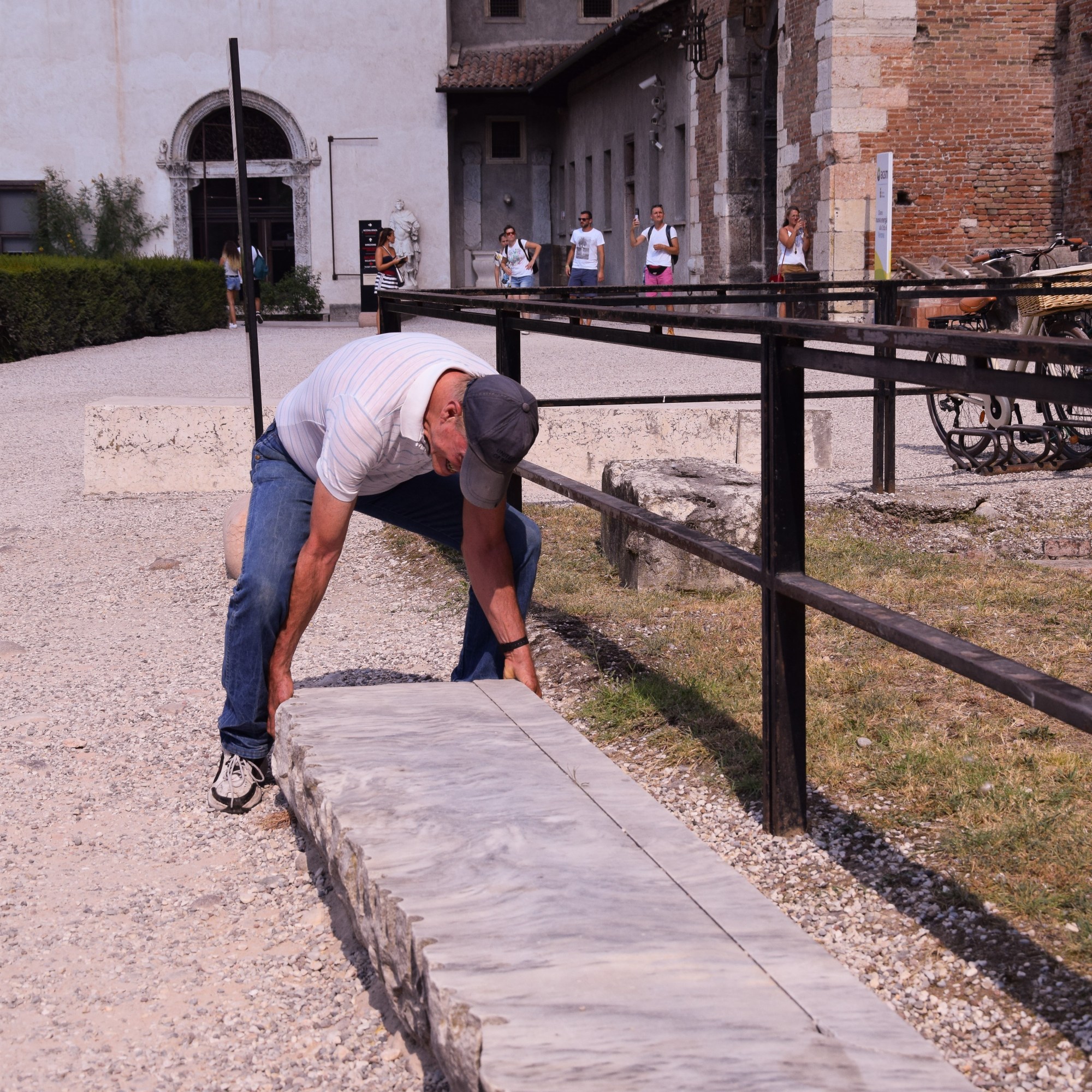 For our production, we got a lot of inspiration from the Italian Renaissance. While the production team visited Verona last year, we were particularly taken by awe of the magnificent marble we found there. Here you can see Ken nicking the marble slab for Juliet’s tomb…